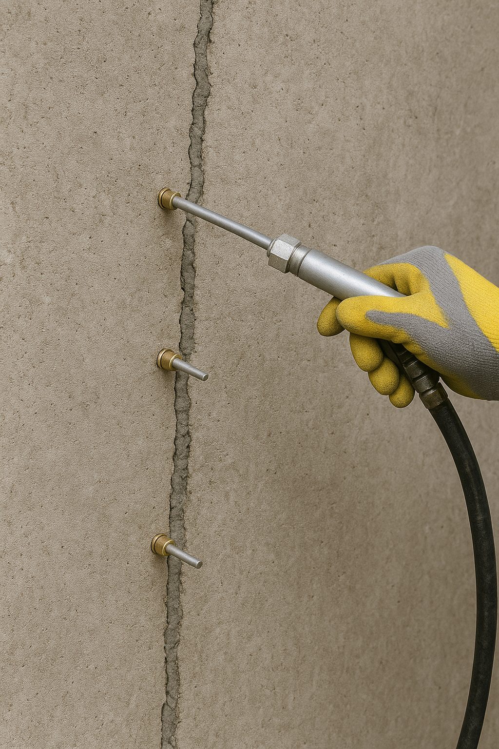 Concrete crack injection is a repair method where epoxy or polyurethane resin is injected into cracks in concrete to restore structural strength or seal leaks. It’s a non-invasive and highly effective way to fix cracks without removing or replacing the concrete.
